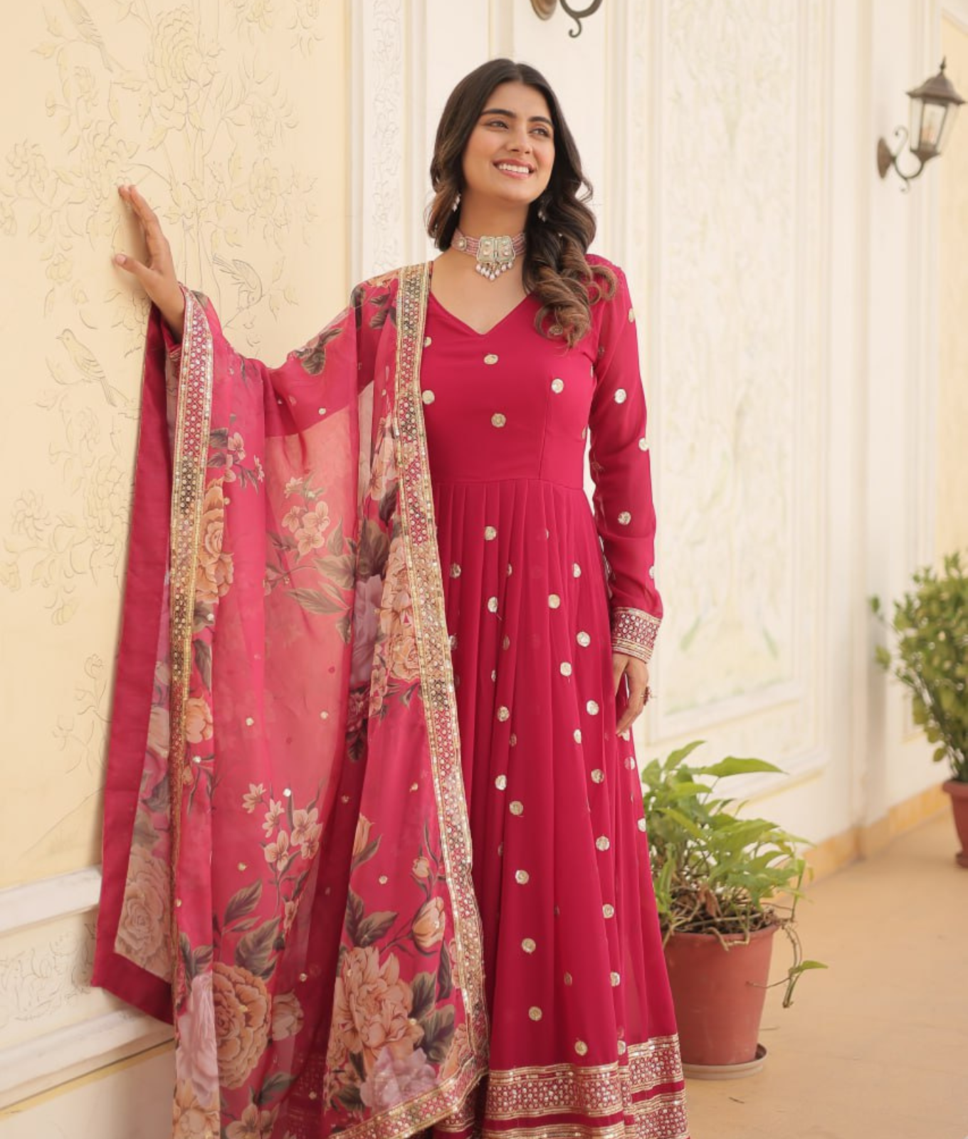 Most Magnificent Chinon Silk Anarkali Style Suit Set