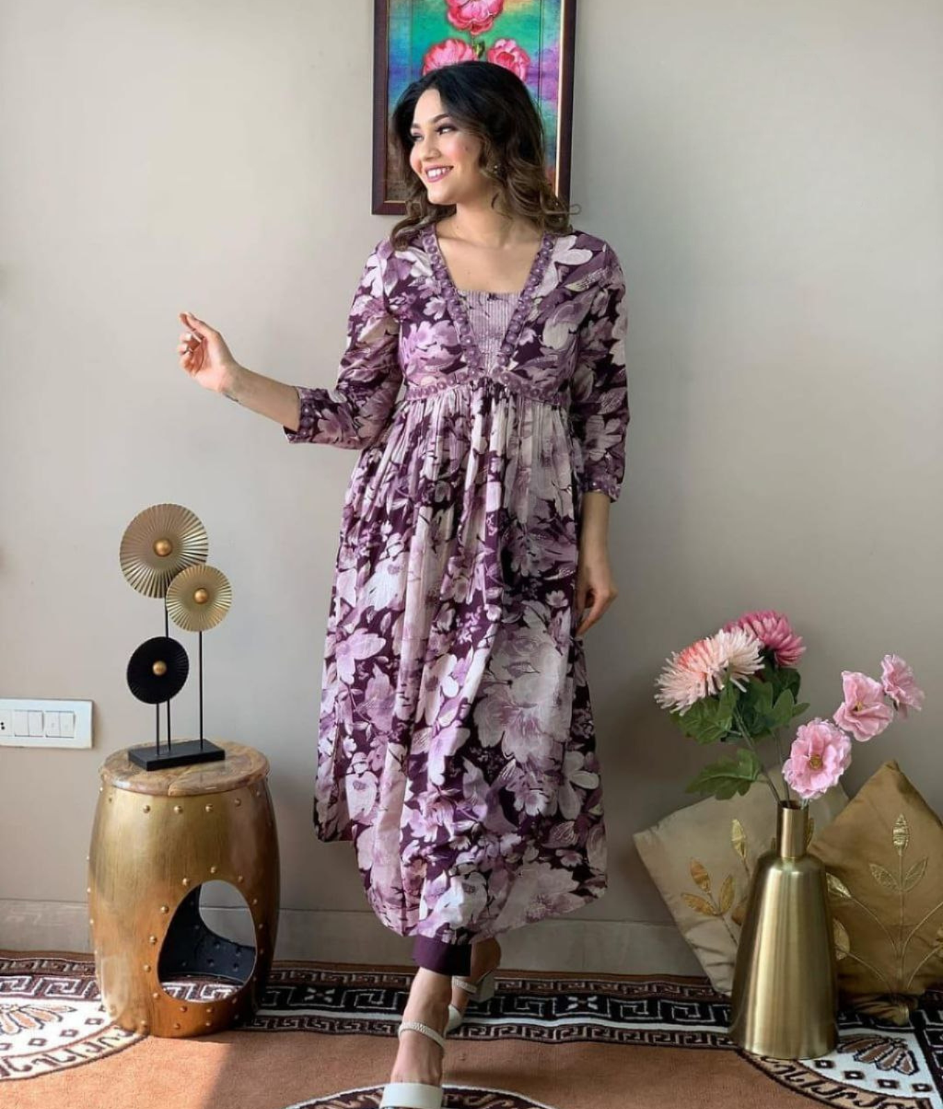 Most Stunning Maslin Silk Anarakli Embroidered Suit Set